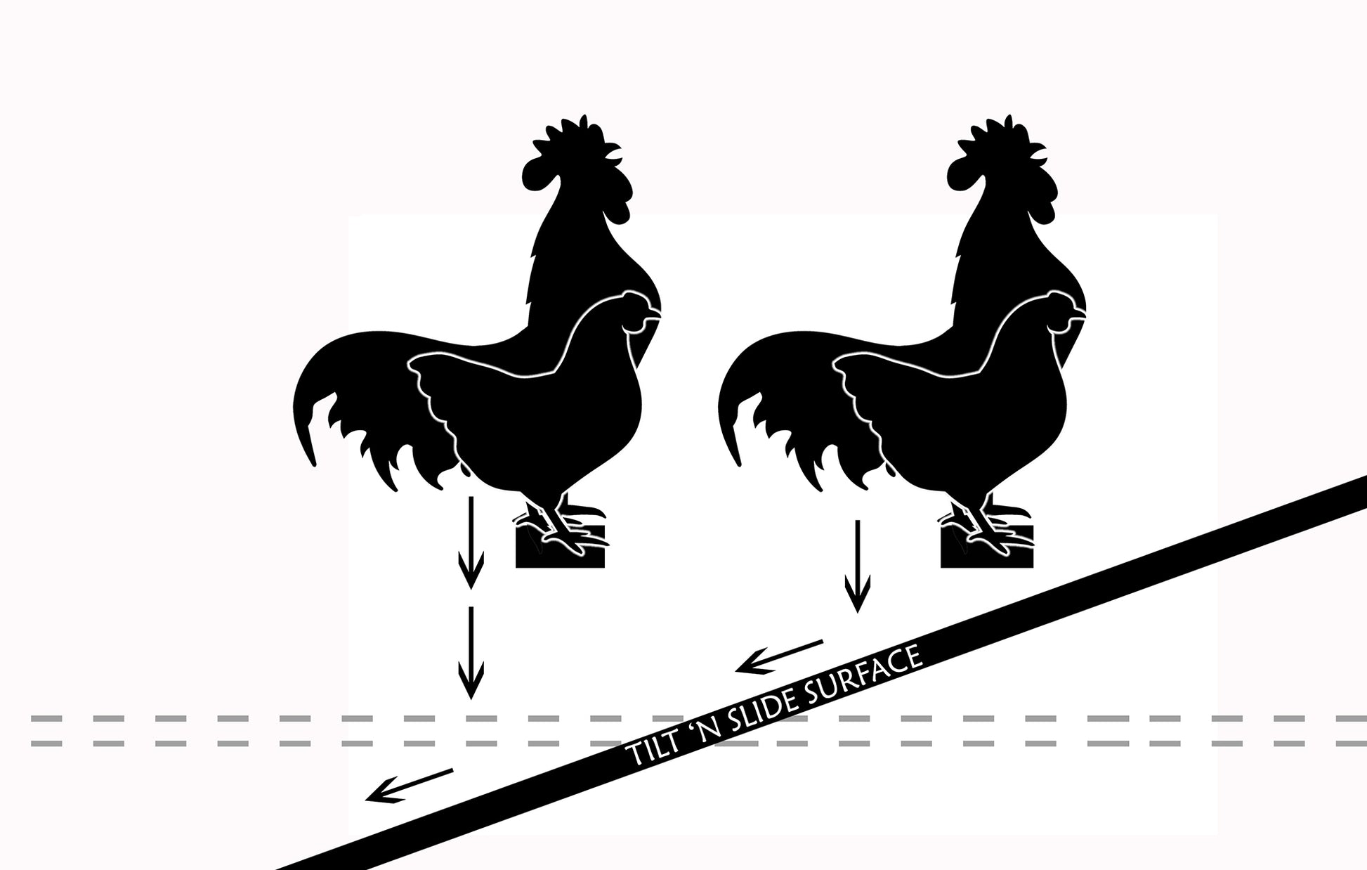 Tilt ’N Slide™ is a practical, low-maintenance solution for managing waste beneath poultry roosts. Designed for use in chicken coops and poultry housing, this system uses a gently sloped, non-stick tarp surface to direct droppings away from roosting areas, helping reduce odor, moisture buildup, and daily cleanup.